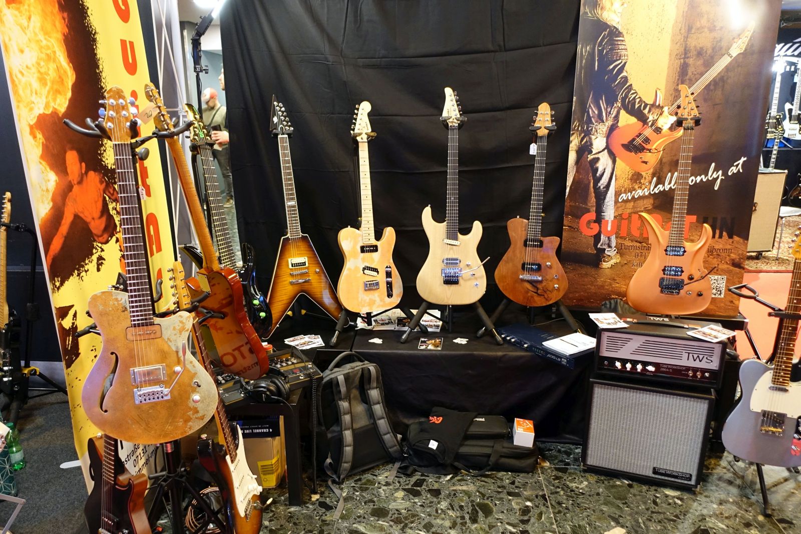 Ich handele die mir wichtigen Aussteller in der Reihenfolge ab, wie sie auch auf meinem Weg lagen, anstatt nach Gitarren, Amps, Effekte, Sonstiges zu kategorisieren. Also, los geht’s!