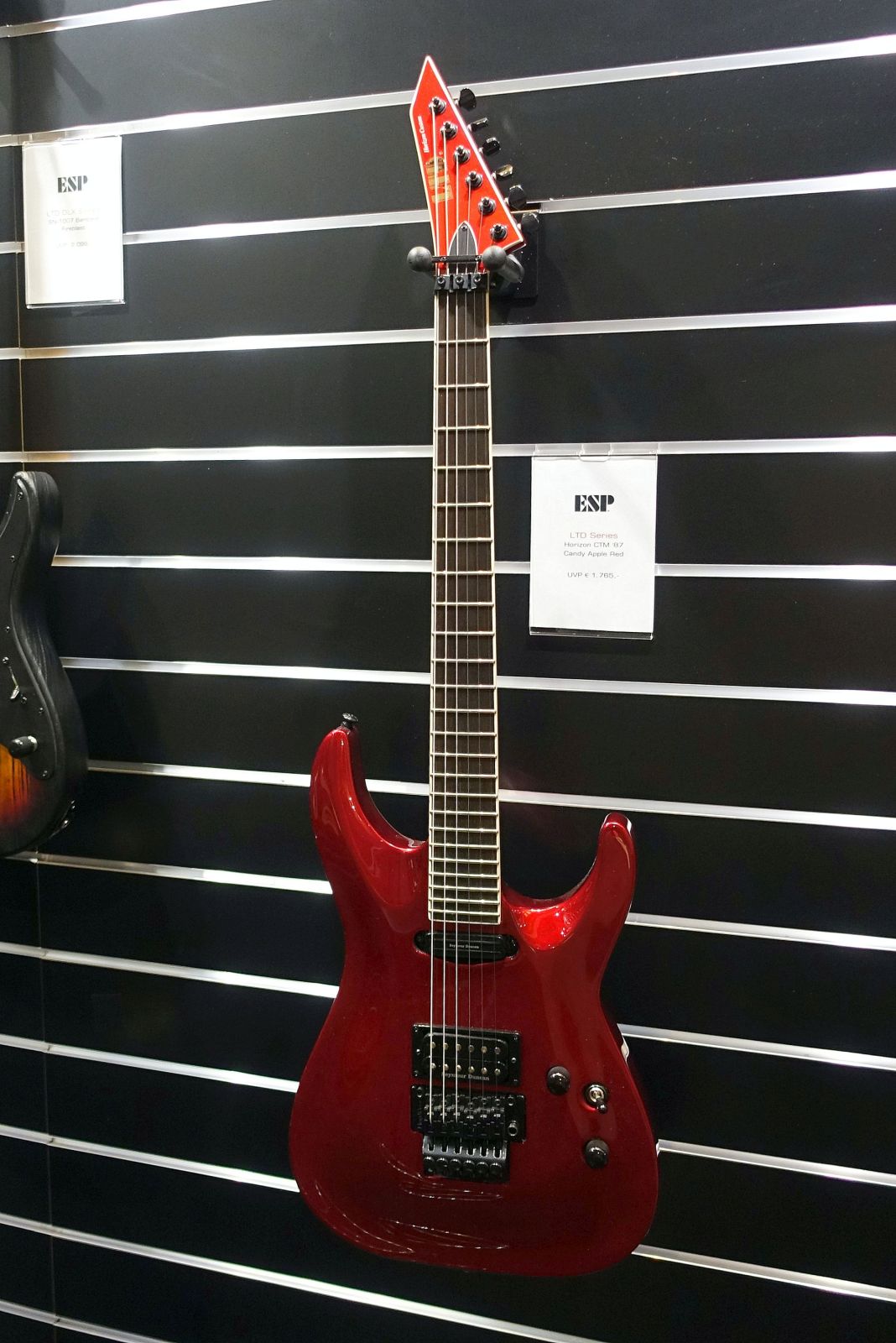 - ESP: Die Japaner hatten direkt im Erdgeschoss eine größere Ausstellungsfläche und zeigten diverse ESP- und LTD Modelle der aktuellen Produktion. Mir fiel eine Reissue der Horizon ’87 auf, in schönem Candy Apple Red. 1765€ überraschte mich, ich habe die erste Reissue der Page Hamilton Signature in Distresses Magenta, was letztlich genau dieses Modell ist, und die war wesentlich günstiger damals.