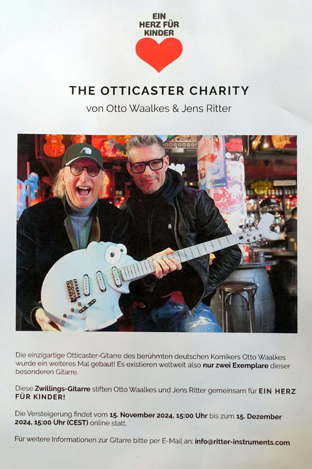 Ritter Guitars – wie üblich eine Attraktion der Summit. Diesmal gab es neben den bekannten Formen eine „Otticaster“ zu sehen, welche zugunsten „Ein Herz für Kinder“ gebaut wurde und ab November versteigert wird.