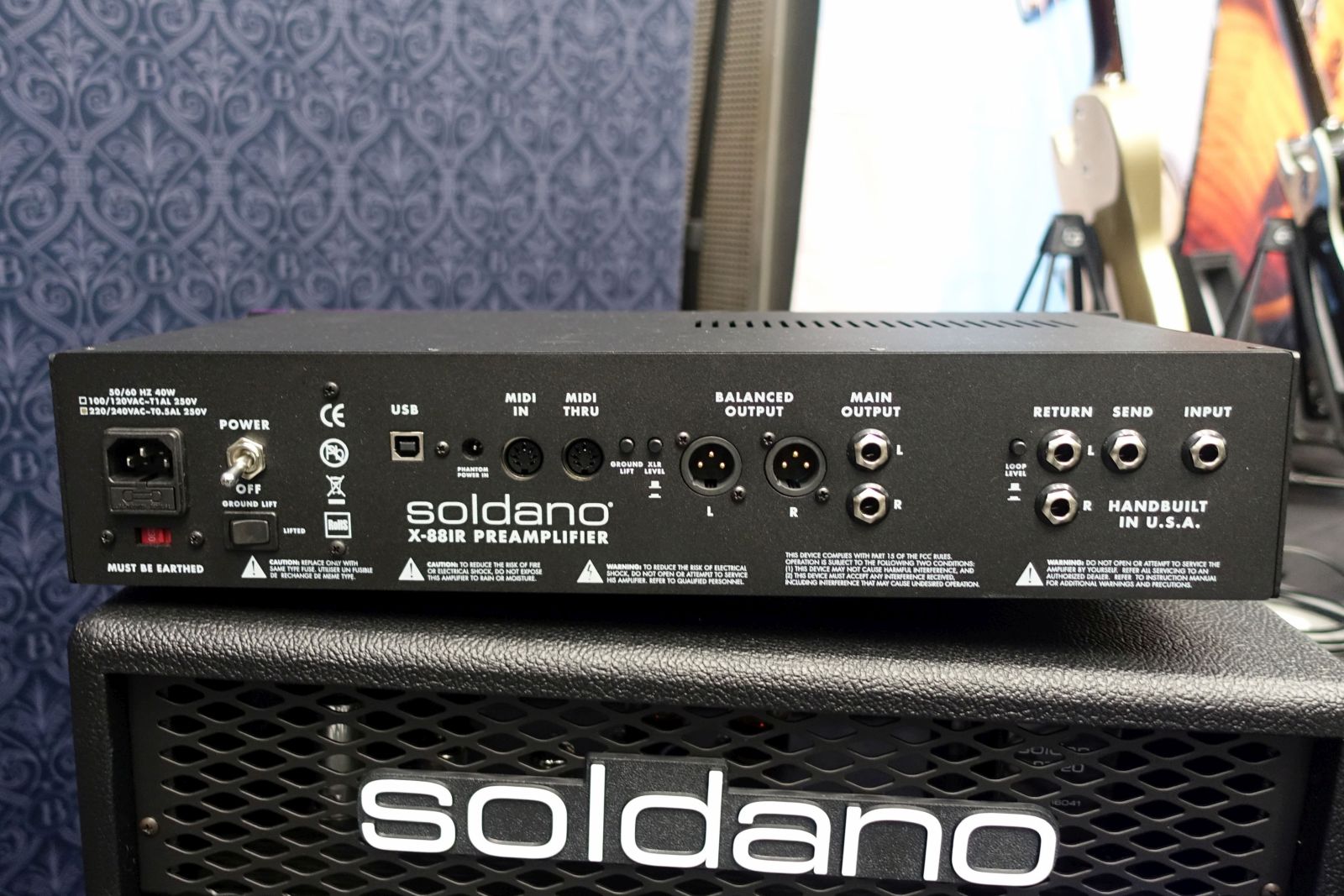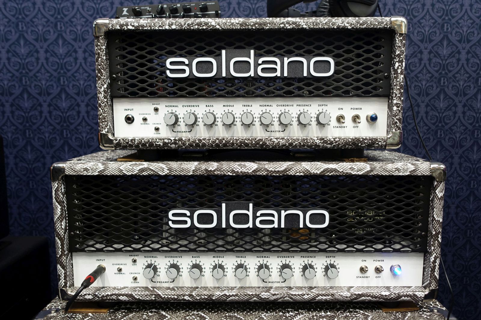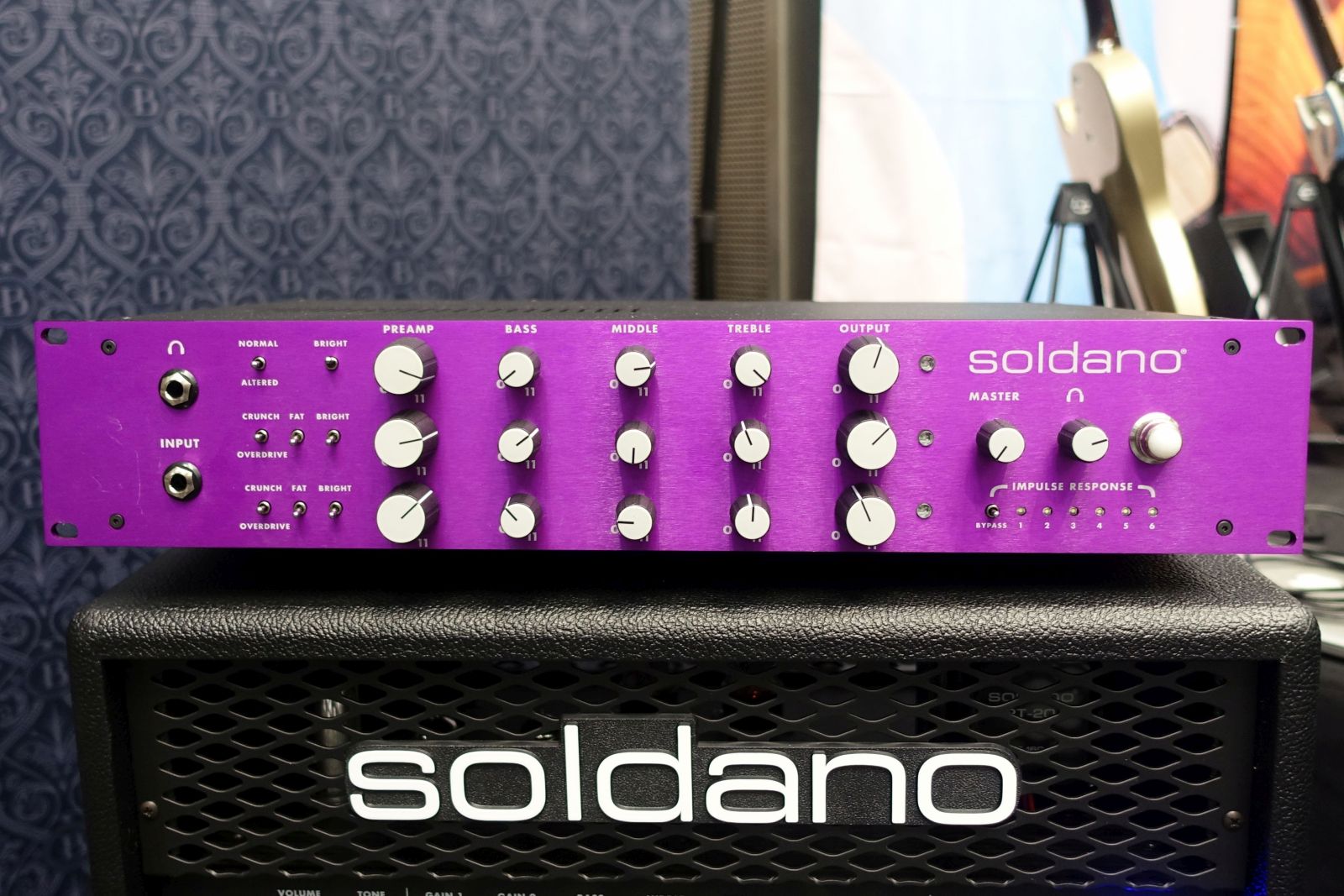 Bei Soldano gab es als Neuigkeit den im Oktober erhältlichen X88iR Preamp zu sehen. Klar, ein Reissue des ersten 3-Kanalers X88, aber mit IRs, MIDI, einem Loop – und ebenfalls einigen Switches, um die Kanäle anzupassen (siehe Modul). Sieht klasse aus, klingt herausragend und wird so ca. 2500€ kosten.