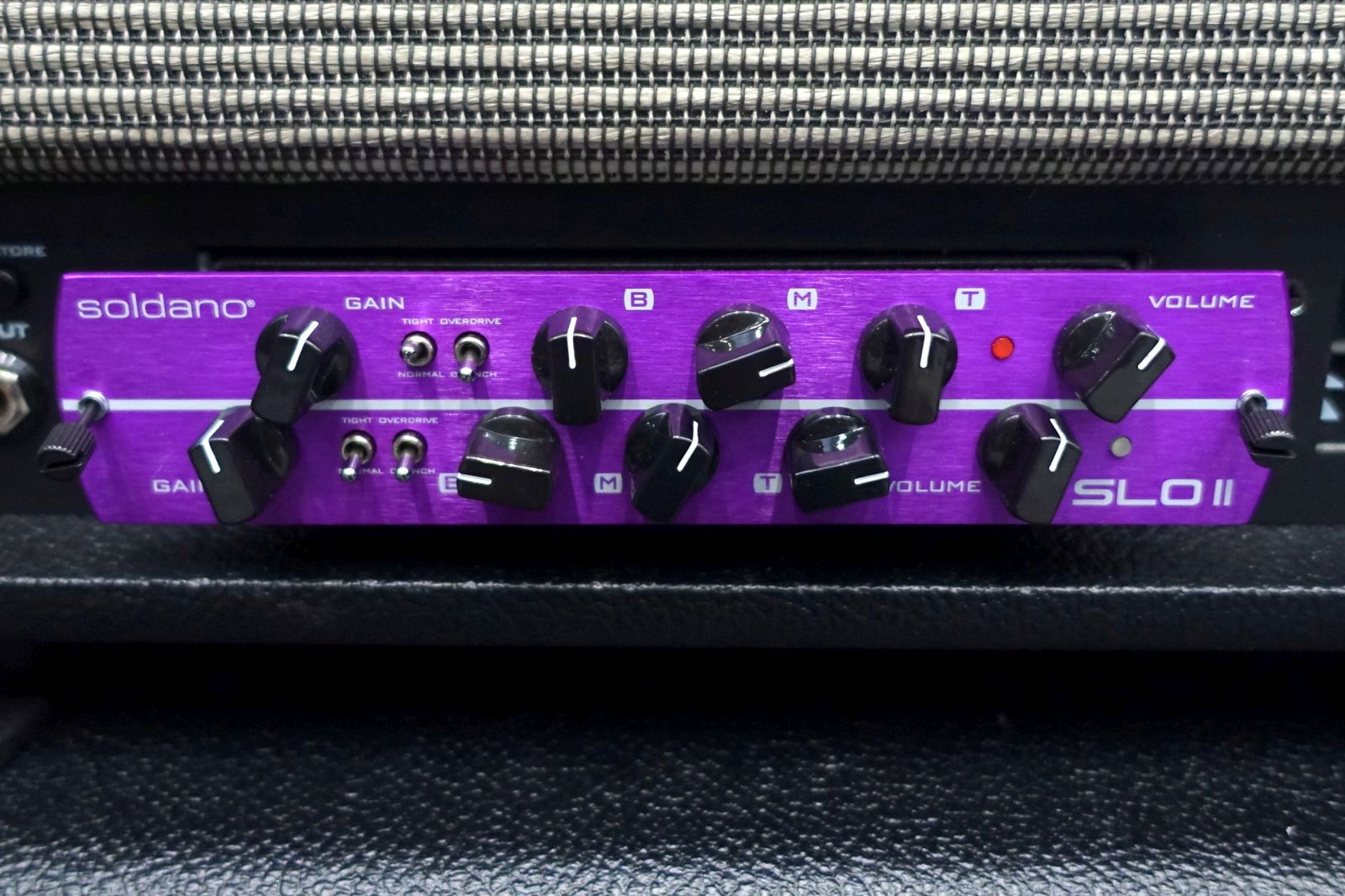 Bei Synergy gab es zum einen das neue 20W Topteil namens SYN-20IR im schicken Metall Gehäuse mit integriertem Clean Kanal und IRs (pro Kanal zuweisbar!) zu sehen, im Gegensatz zum bisherigen SYN-30 nun auch ein Master auf der Front, außerdem pro Kanal zuweisbarer Power-Amp Struktur. Mit einem Dual Modul erhält man so einen handlichen 3-Kanaler. Ich lief indes direkt heiß, als ich 5 Schachteln des limitierten neuen Soldano SLO-II Moduls in purple entdeckte, das eigentlich nur in den USA über Reverb und ebay verkauft wird. Dennis hat aber 4 Dutzend für Europa und Japan losgeeist und Produktiv verkaufte sie direkt – mit 100€ Messe-Rabatt. So zückte ich die EC-Karte und war 15 Minuten später Eigentümer eines neuen Moduls. Und dann habe ich für einen Freund gleich noch eins reserviert, denn die Teile gingen weg wie geschnitten Brot. Der Clou zum bisherigen SLO Modul ist zum einen die komplett getrennte Klangregelung und zum anderen die Möglichkeit, über Switches die Kanäle klassisch Crunch / Overdrive oder Crunch/Crunch sowie OD/OD zu nutzen – dazu ein Tight Switch pro Kanal. Klingt super und wird meinen SYN-50 so schnell nicht mehr verlassen.