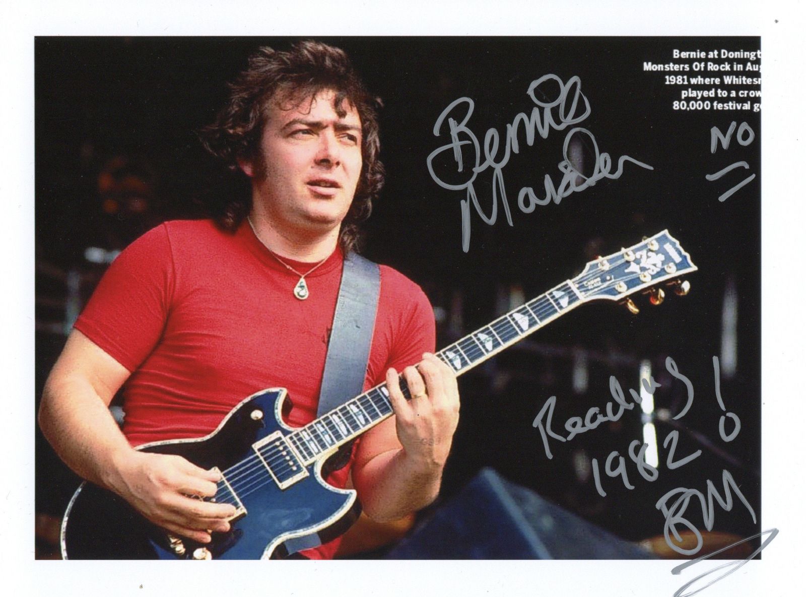 Daher: auf nach Maintal! Bei Guitarpoint, welcher seit neuestem eine „strategische Partnerschaft“ mit Thomann hat (andere sagen, Thomann hat den Laden mit Mann und Maus gekauft) war wieder Hausmesse angesagt und am Freitag stand ein Workshop mit Bernie Marsden auf dem Plan. Für mich also endlich die Gelegenheit, die Back Plates seiner ehemaligen Yamaha SG3000 sowie meiner Gibson CC08 signieren zu lassen. Es ist immer wieder eine Freude, diesen netten und geerdeten Menschen zu treffen und einen Plausch zu halten, bei dem man jedes Mal was lernt. Ein Rockstar von nebenan, sozusagen. Sehr witzig noch, dass er ein mitgebrachtes Bild umdatiert hat, welches angeblich vom Monsters of Rock 1981 sein sollte. Es sei aber Reading 1982 gewesen, denn er könne sich an das Shirt erinnern und „damals haben mir die Weiber die Klamotten noch recht schnell vom Leib gerissen“ LOL