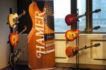 Hamer is back! Nicht direkt auf der Messe, sondern gegenüber im Marriott fanden die Präsentationen der neuen Hamer-Modelle statt. 6 Stück, allesamt klassische Designs mit Mahagoni- oder Korina Bodys und 5 davon mit kurzer Mensur. Sehr gut spielende und klingende Teile. Da sie nicht mehr aus USA sondern Indonesien (die es aber mittlerweile richtig gut können) kommen liegen die Preise bei höchst angemessenen 599 bis 799€.